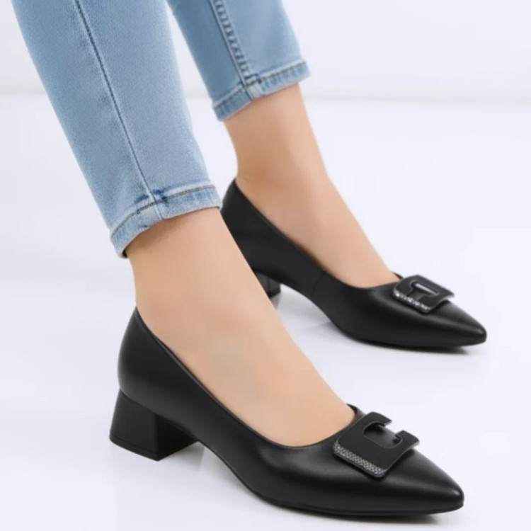 کفش ساده و جذاب و خوش پا همه پسند مدل ویا با پاشنه سه سانت و زیره دافوس خارجی رویه تسلا.
